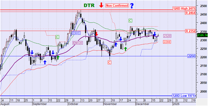 Το ημερήσιο όριο επιβεβαίωσης αντιστροφής της τάσης σε καθοδική βρίσκεται στις 2288 μονάδες