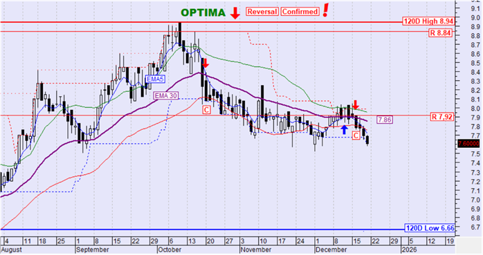ο Εκθετικός Μέσος Όρος των 30 ημερών (ΕΜΑ30) στα 7,86€