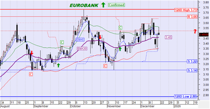 ο Εκθετικός Μέσος Όρος των 30 ημερών (ΕΜΑ30) στα 3,45€