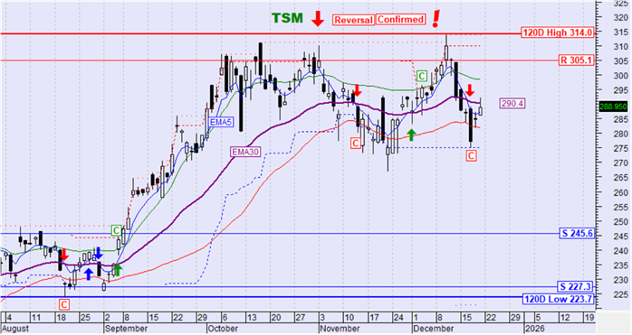 ο Εκθετικός Μέσος Όρος των 30 ημερών (ΕΜΑ30) στα 290,4$