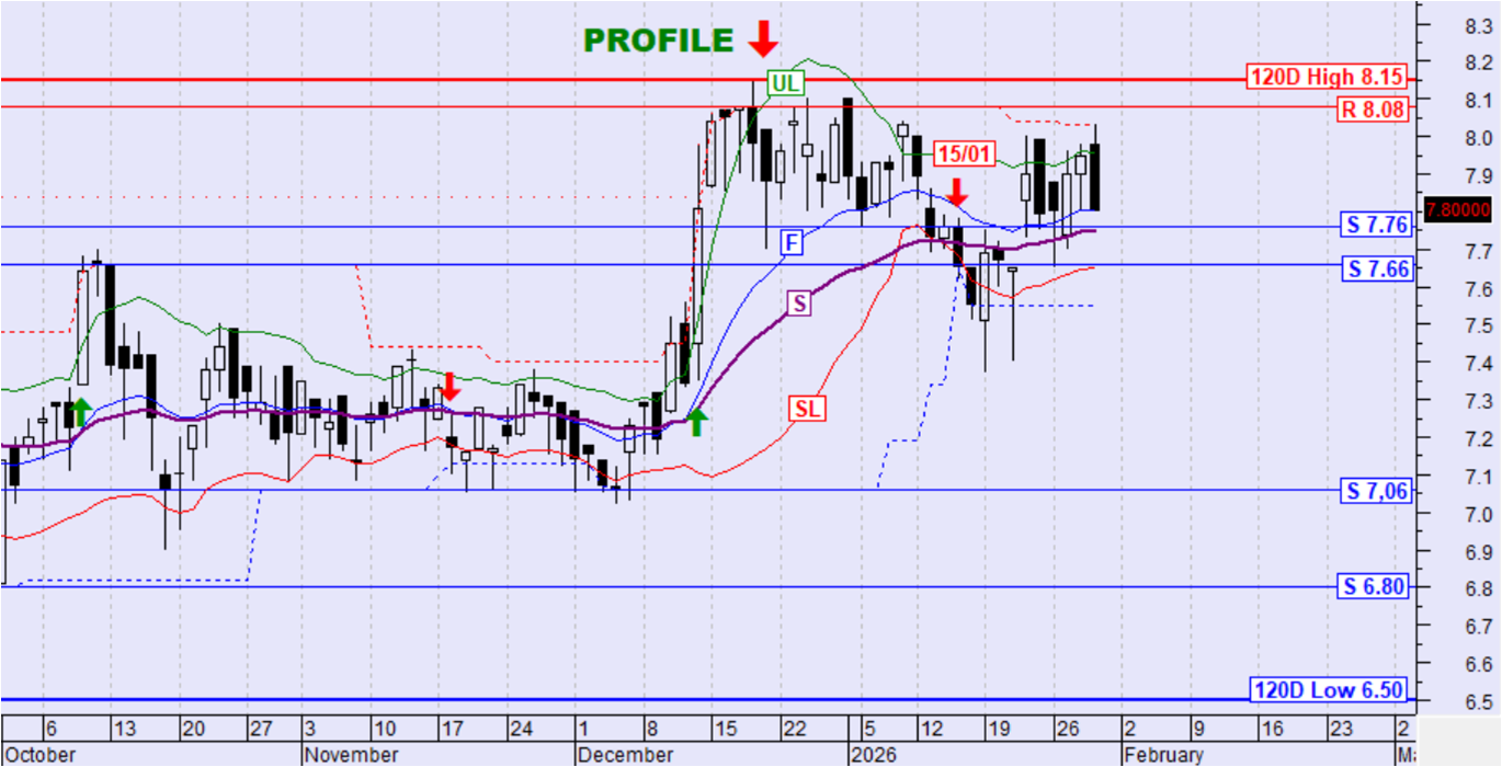 η μεσοπρόθεσμη αντίσταση στα 7,83€