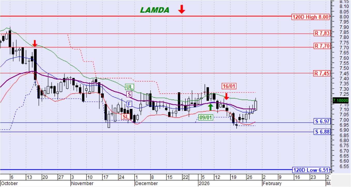 Η μετοχή κινήθηκε έντονα ανοδικά και πέτυχε την υπέρβαση των F και S όχι όμως και της UL με αποτέλεσμα τη διατήρηση της καθοδικής τάσης.