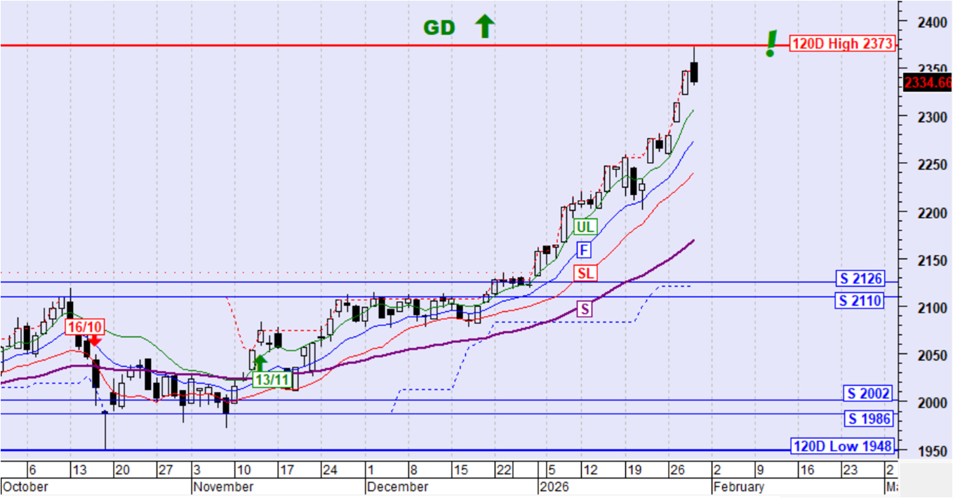 το υψηλό των 120 ημερών στις 2373 μονάδες
