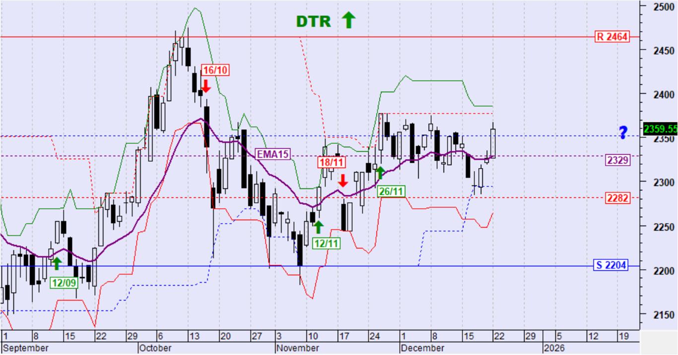 ο Εκθετικός Μέσος Όρος των 15 ημερών (ΕΜΑ15) στις 2329 μονάδες