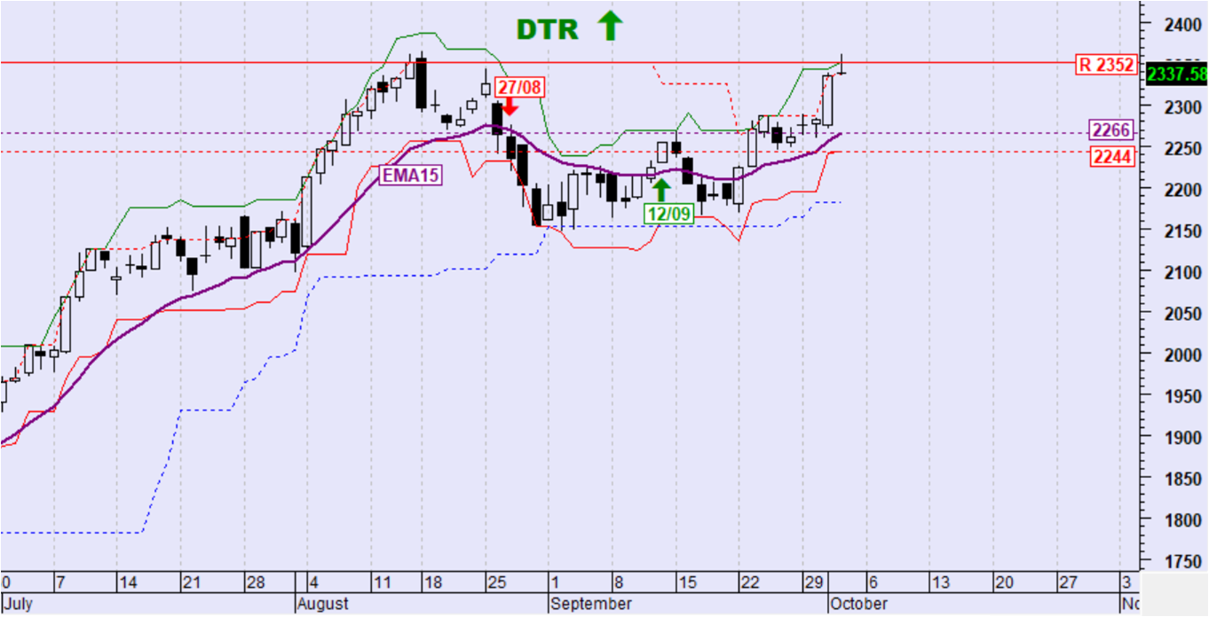 Ημερήσιο όριο αντιστροφής της βραχυπρόθεσμης τάσης σε καθοδική: 2244 μονάδες
