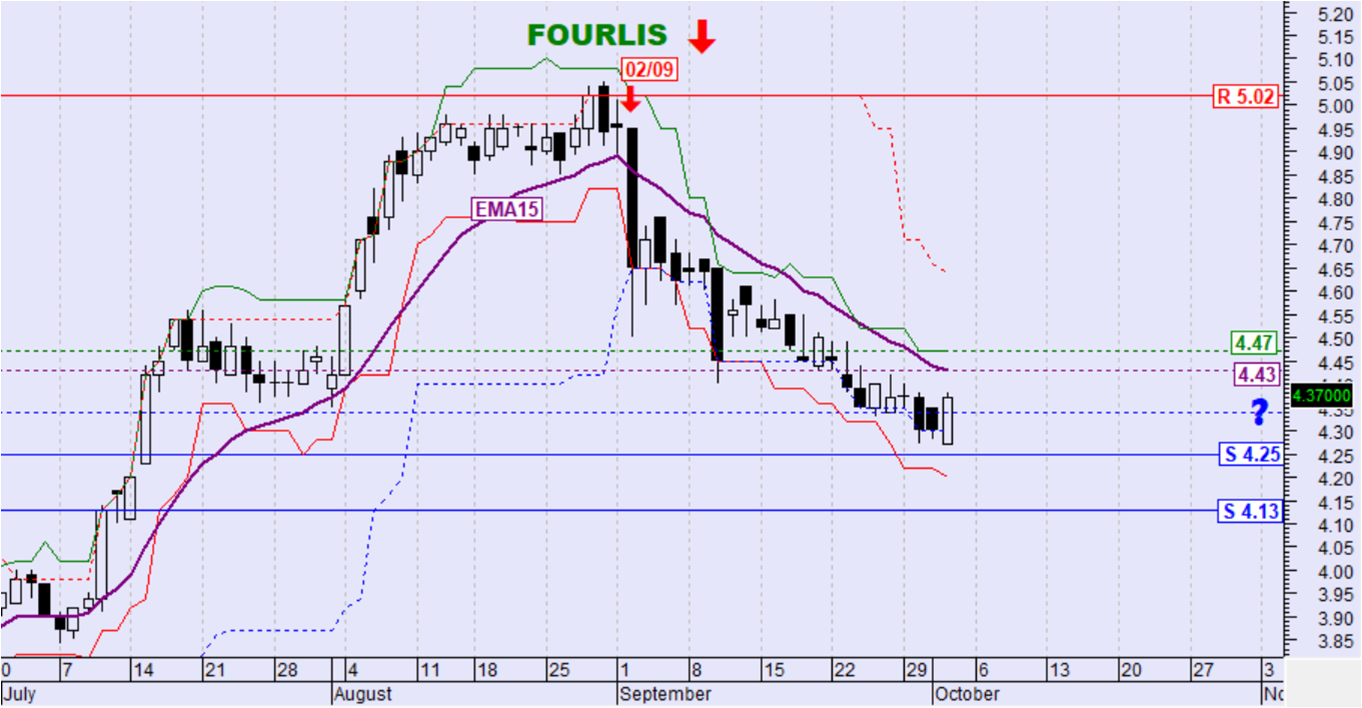 ο Εκθετικός Μέσος Όρος των 15 ημερών (ΕΜΑ15) στα 4.43€