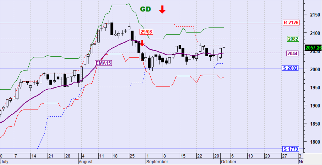 Ημερήσιο όριο αντιστροφής της βραχυπρόθεσμης τάσης σε ανοδική: 2082 μονάδες
