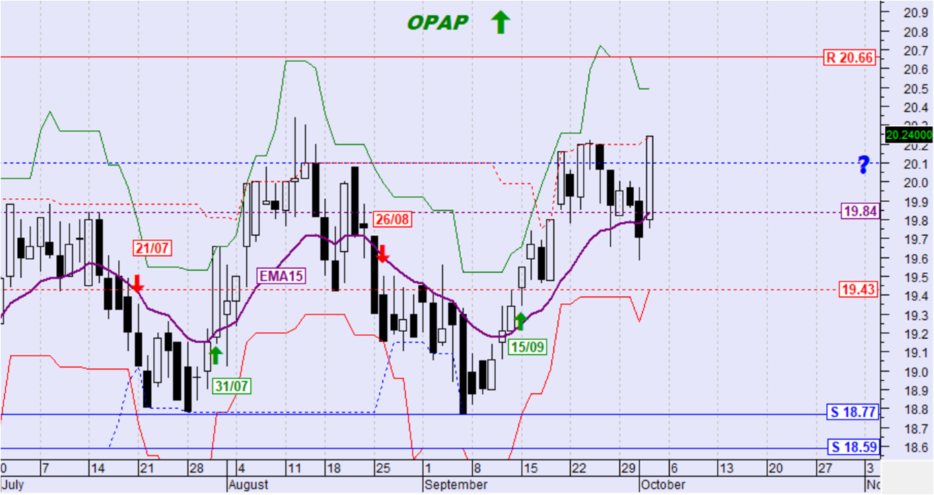 ο Εκθετικός Μέσος Όρος των 15 ημερών (ΕΜΑ15) στα 19,84€