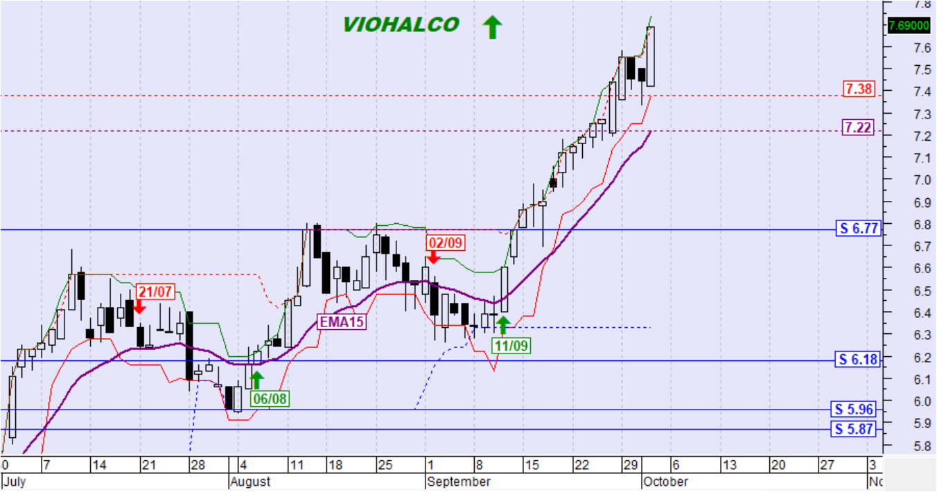 Ημερήσιο όριο αντιστροφής της βραχυπρόθεσμης τάσης σε καθοδική: 7.38€ (κλείσιμο)