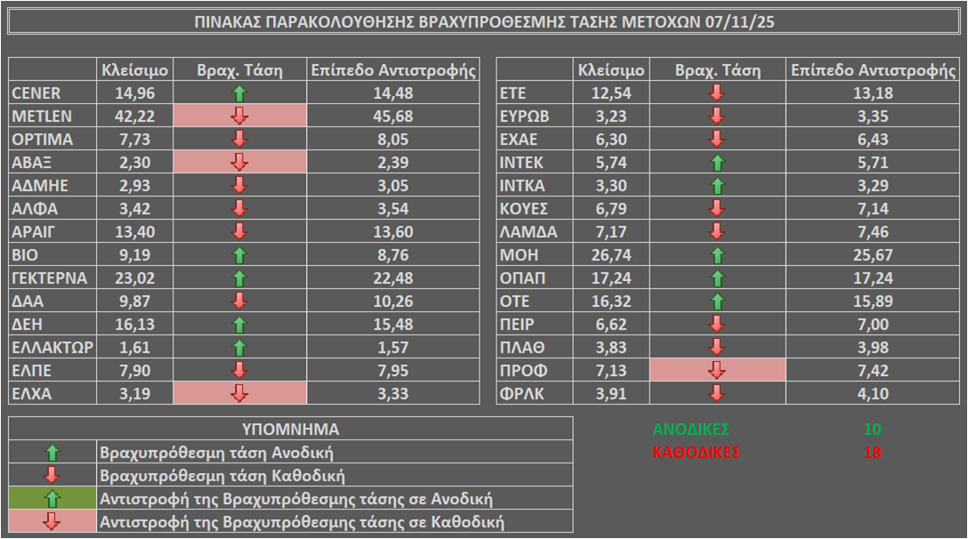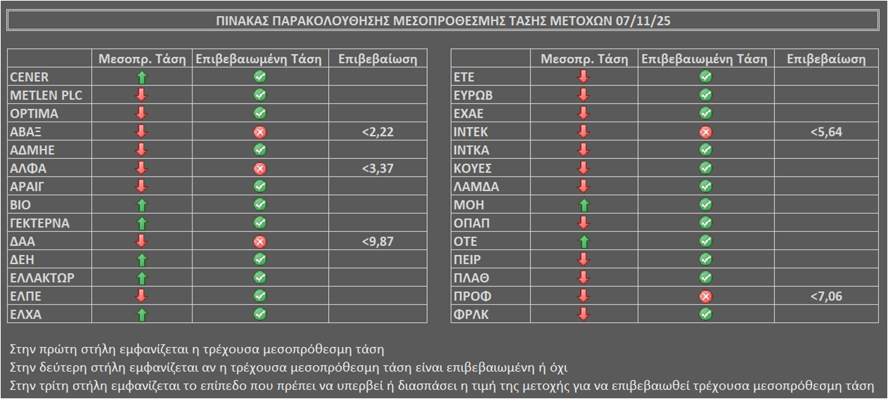 Σχόλιο τεχνικής ανάλυσης δεικτών – μετοχών με το κλείσιμο της 07-11-25