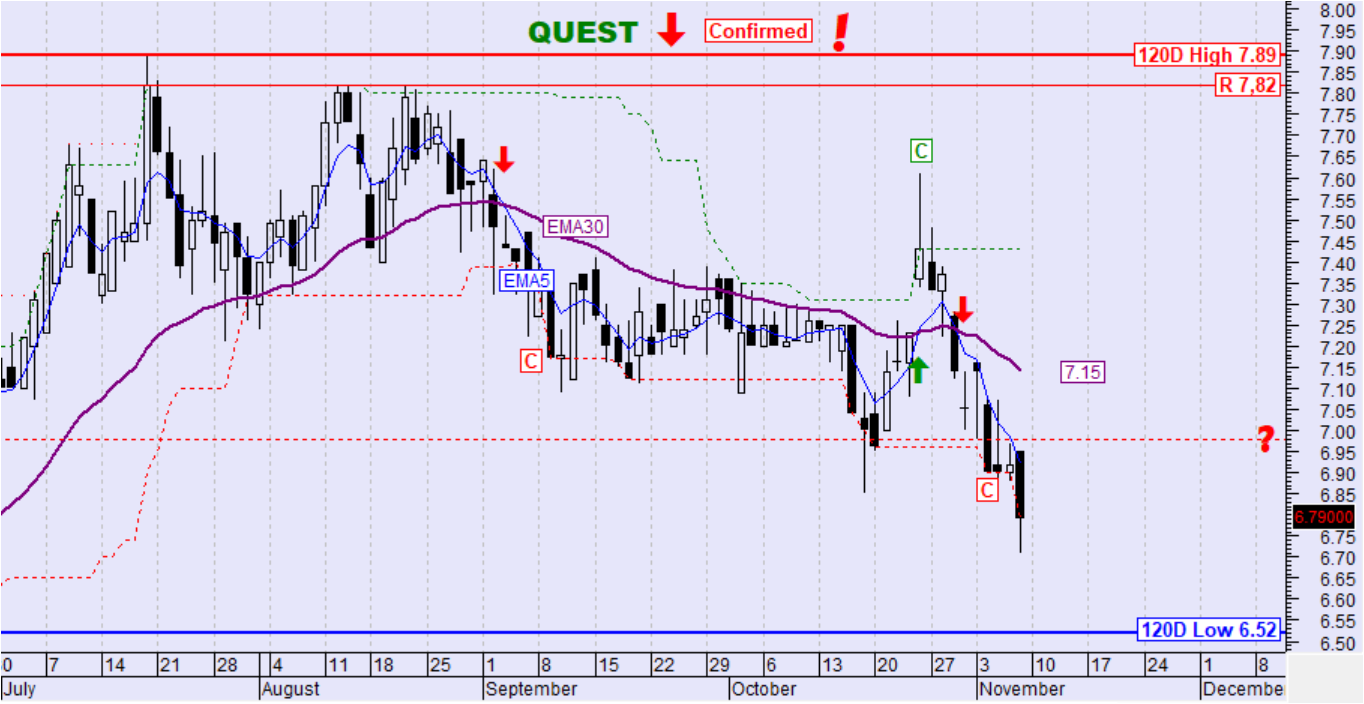 Η τιμή της μετοχής την περασμένη εβδομάδα κινήθηκε καθοδικά πέτυχε νέο χαμηλό 120 ημερών και διατήρησε την τιμή χαμηλότερα του ΕΜΑ30. Επίσης ο ΕΜΑ5 διατηρεί την τιμή του χαμηλότερα του ΕΜΑ30 με αποτέλεσμα τη διατήρηση της μεσοπρόθεσμης επιβεβαιωμένης καθοδικής τάσης.