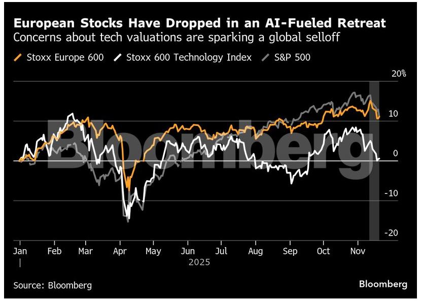 Συνεχίζονται οι πιέσεις στις ευρωπαϊκές μετοχές, οι οποίες αναμένεται να επεκτείνουν την καθοδική τους πορεία, στο τέλος μια εβδομάδας, που επισκιάστηκε από ανησυχίες για τις αυξημένες αποτιμήσεις των τεχνολογικών κολοσσών και την αβεβαιότητα στο θέμα της νομισματικής πολιτικής στις ΗΠΑ.