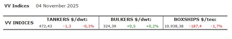 - Ο δείκτης των tankers υποχώρησε κατά 0,3% και διαμορφώθηκε στις 472,43 μονάδες.