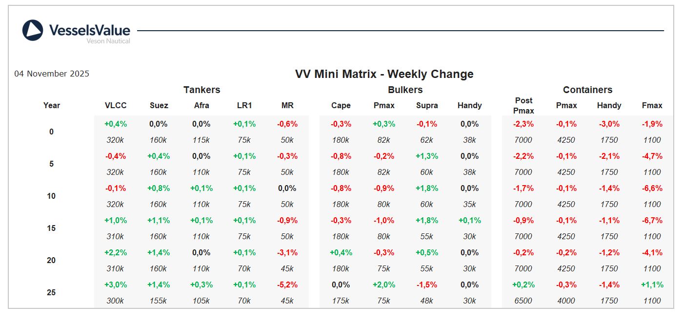 Κατά τη διάρκεια της εβδομάδας που πέρασε, οι δείκτες της VesselsValue κινήθηκαν ως εξής: