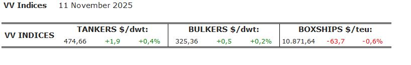 - Ο δείκτης των bulkers σημείωσε άνοδο 0,2% και διαμορφώθηκε στις 325,36 μονάδες.