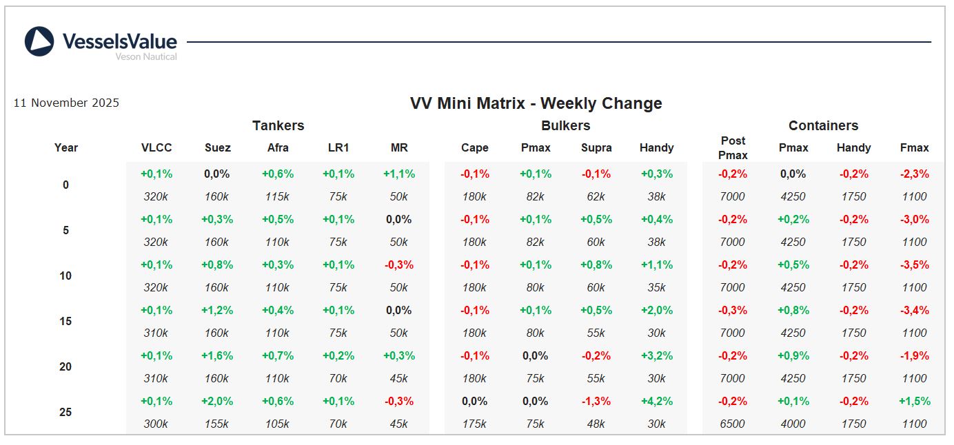 Κατά τη διάρκεια της εβδομάδας που πέρασε, οι δείκτες της VesselsValue κινήθηκαν ως εξής: