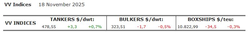 - Ο δείκτης των tankers ενισχύθηκε κατά 0,7% και διαμορφώθηκε στις 478,55 μονάδες.