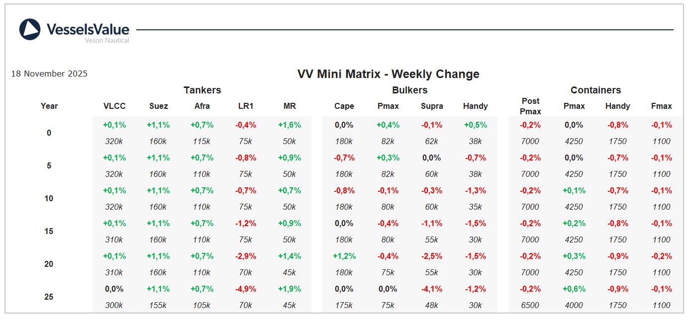 Κατά τη διάρκεια της εβδομάδας που πέρασε, οι δείκτες της VesselsValue κινήθηκαν ως εξής: