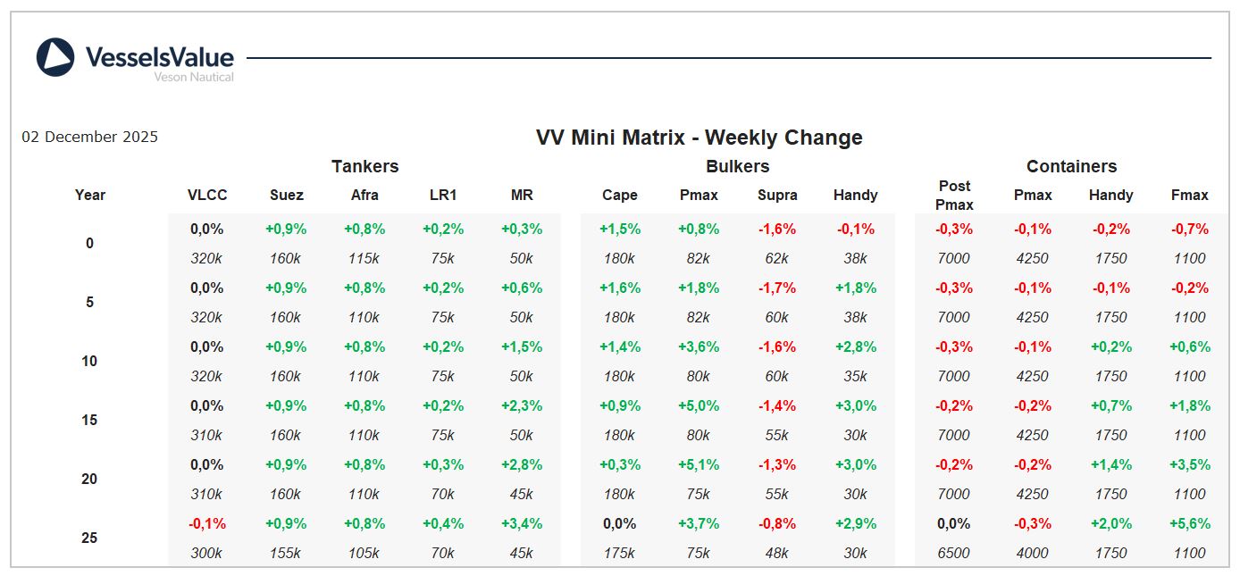 Κατά τη διάρκεια της εβδομάδας που πέρασε, οι δείκτες της VesselsValue κινήθηκαν ως εξής: