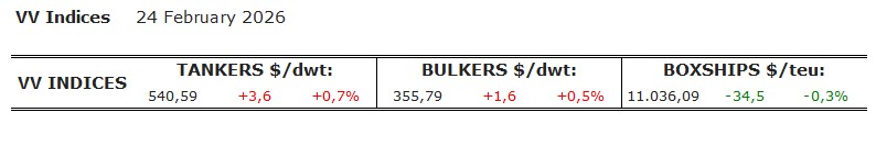 - Ο δείκτης των tankers ενισχύθηκε κατά 0,7% και διαμορφώθηκε στις 540,59 μονάδες.
