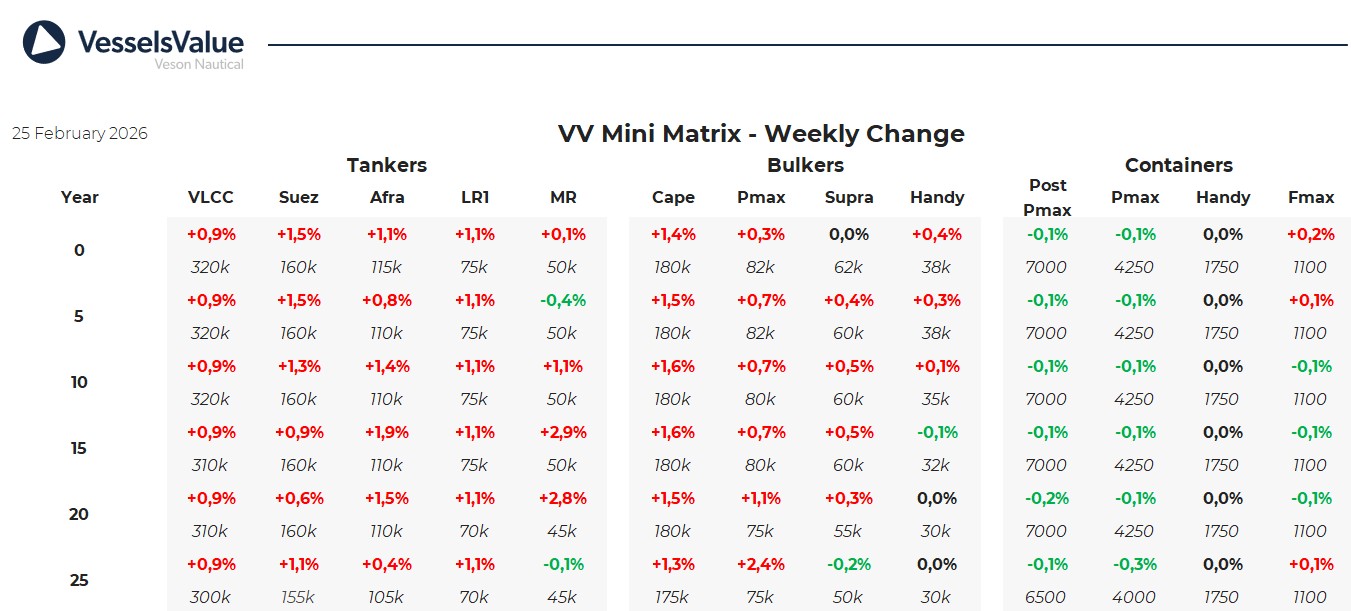 Κατά τη διάρκεια της εβδομάδας που πέρασε, οι δείκτες της VesselsValue κινήθηκαν ως εξής: