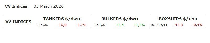 Στη συνέχεια, προκύπτει ο μέσος όρος από τα στοιχεία αυτά και διαμορφώνεται ο δείκτης του κάθε κλάδου. Ο σκοπός των δεικτών της VV είναι να αποτυπώσουν την τάση που επικρατεί στη δευτερογενή αγορά πλοίων, στην παγκόσμια ναυτιλιακή αγορά.