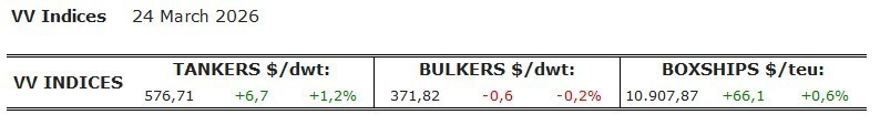Στη συνέχεια, προκύπτει ο μέσος όρος από τα στοιχεία αυτά και διαμορφώνεται ο δείκτης του κάθε κλάδου. Ο σκοπός των δεικτών της VV είναι να αποτυπώσουν την τάση που επικρατεί στη δευτερογενή αγορά πλοίων, στην παγκόσμια ναυτιλιακή αγορά.