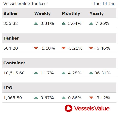 Κατά τη διάρκεια της εβδομάδας που πέρασε, οι δείκτες της VesselsValue κινήθηκαν ως εξής: