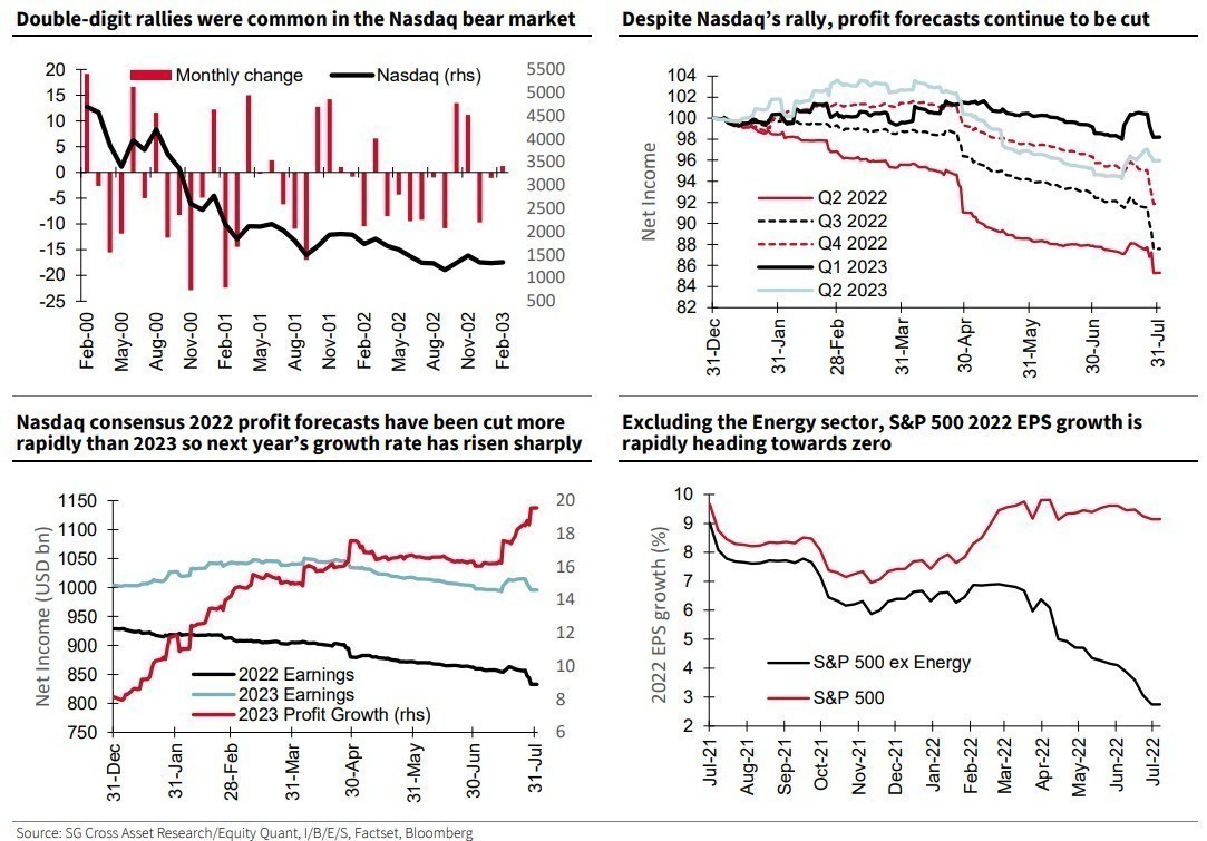 Για να γίνει τόσο μεγάλο ράλι, βοηθάει να έχει προηγηθεί μεγάλη πτώση. Παρά τις συνήθεις κατασκευασμένες «εκπλήξεις», οι προβλέψεις για τα κέρδη του Nasdaq συνέχισαν να μειώνονται, με τις περισσότερες μειώσεις να επικεντρώνονται στα επόμενα δύο τρίμηνα.