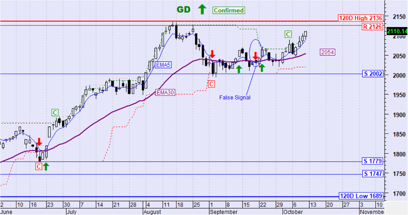 το υψηλό των 120 ημερών στις 2136 μονάδες
