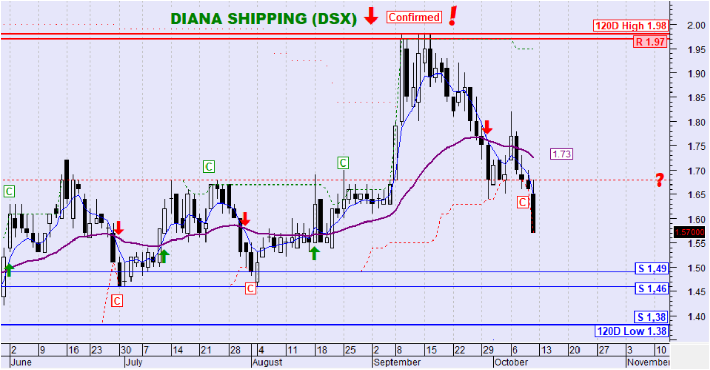 Η τιμή της μετοχής την περασμένη εβδομάδα κινήθηκε καθοδικά και πέτυχε την καθοδική διάσπαση του ορίου επιβεβαίωσης της αντιστροφής της τάσης σε καθοδική με αποτέλεσμα την επιβεβαίωση της σηματοδότησης αντιστροφής της μεσοπρόθεσμης τάσης σε καθοδική.