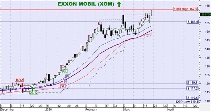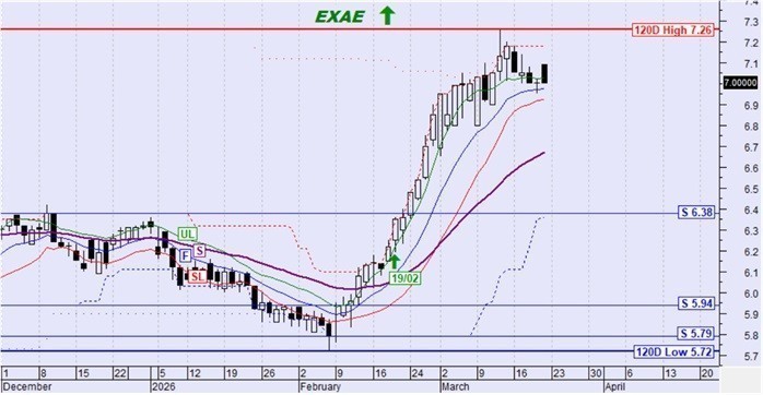 Η μετοχή κινήθηκε ανοδικά και πέτυχε νέο υψηλό 120 ημερών. Η τιμή παραμένει ψηλότερα της SL και του αργού κινητού μέσου όρου S έτσι διατηρείται η ανοδική τάση.
