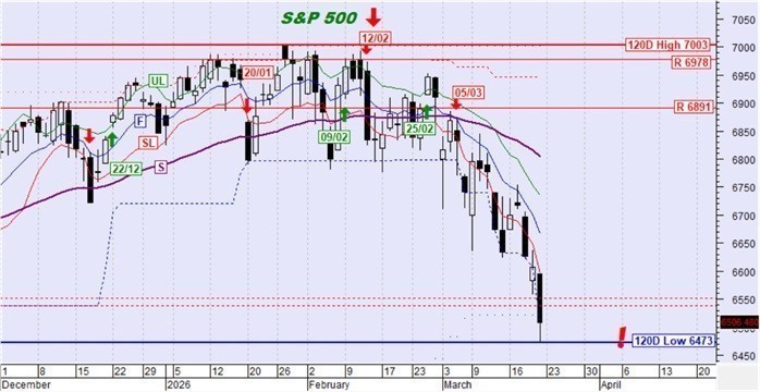 Ο S&P500 κινήθηκε έντονα καθοδικά, διατηρεί την καθοδική τάση και πέτυχε νέο χαμηλό 120 ημερών.