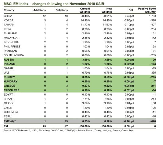 Σύμφωνα με σημερινή ανάλυση της Wood, οι συνολικές εκτιμώμενες εκροές των παθητικών κεφαλαίων ανέρχονται στα 206 εκατ. δολάρια, εκ των οποίων τα 104 εκατ. αφορούν τη μετοχή της Eurobank, τα 70 εκατ. την ΕΤΕ και τα 32 εκατ. την Τράπεζα Πειραιώς.