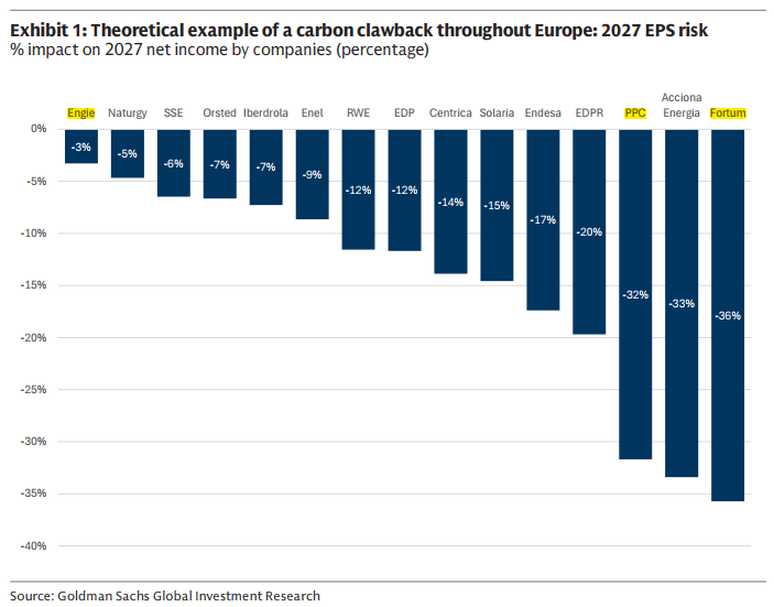 Για να καταλάβετε, σε καλύτερη θέση από όλες είναι η γαλλική ENGIE που η Goldman Sachs βλέπει τα κέρδη ανά μετοχή της να πέφτουν μόνο κατά -3% το 2027.