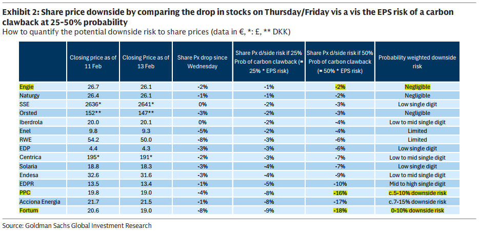 Σε περίπτωση που γίνει μεγάλη πτώση των τιμών, η Goldman θεωρεί ότι θα είναι ευκαιρία για τοποθετήσεις πρωτίστως στην γερμανική RWE.