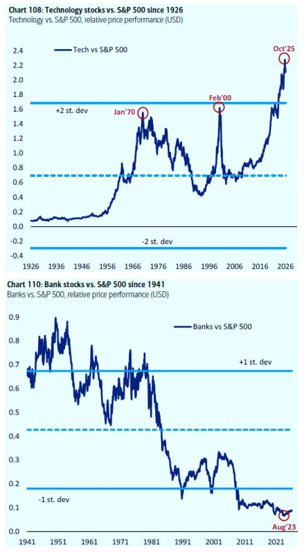 Παρόλο την κολοσσιαία τους άνοδο, οι αμερικάνικες τράπεζες σε σχέση με τις εταιρείες τεχνολογίας, έχουν υποαποδόσει όχι απλώς πολύ αλλά υπερβολικά πολύ.