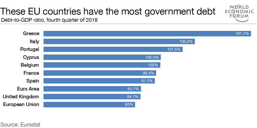 Στα τέλη του 2018, το χρέος της Ελλάδας ανερχόταν στο 181% του εθνικού ΑΕΠ, σημειώνοντας αύξηση 5 ποσοστιαίων μονάδων σε σχέση με το προηγούμενο έτος. Αφού πάλεψε για να ελέγξει τις υπέρμετρες δαπάνες, η χώρα έλαβε τρία διαδοχικά πακέτα διάσωσης, αφήνοντας τους πολίτες της να αντιμετωπίζουν αυστηρά μέτρα λιτότητας.