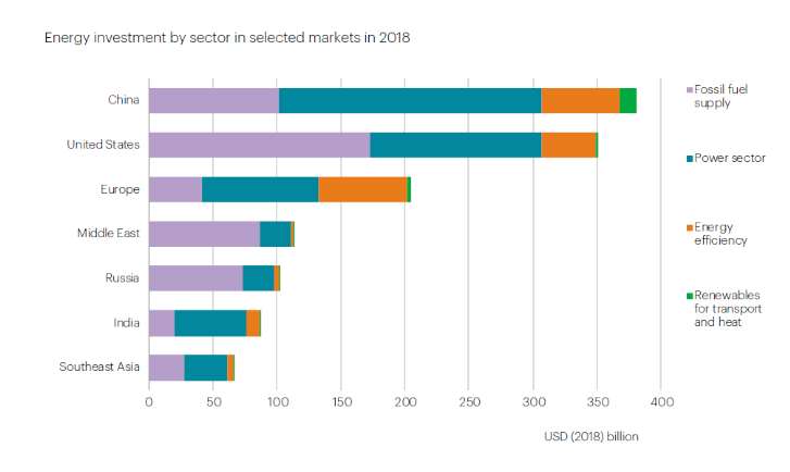 Η Ινδία είναι η πιο ραγδαία αναπτυσσόμενη αγορά για επενδύσεις. Αλλού, οι επενδύσεις στην ενέργεια γενικά έχουν μειωθεί τα τελευταία χρόνια στην Ευρώπη, τη Μέση Ανατολή, τη Νοτιοανατολική Ασία και την υποσαχάρια Αφρική, σύμφωνα με τον οργανισμό.
