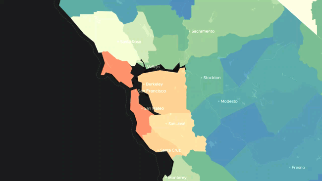 Στην Καλιφόρνια, ο αριθμός των εβδομαδιαίων ωρών που απαιτούνται για έναν εργαζόμενο με τον κατώτατο μισθό για να αντέξει ένα διαμέρισμα δύο υπνοδωματίων είναι αποθαρρυντικός: 119. Στο Σαν Φρανσίσκο (το οποίο είναι και πόλη και κομητεία), ο αριθμός αυτός εκτοξεύεται στις 218 ώρες. Και τα πράγματα μόνο χειρότερα μπορούν να γίνουν για τους λιγότερο εύπορους στο Σαν Φρανσίσκο. Οι επικείμενες αρχικές δημόσιες προσφορές για τις Uber, Airbnb και Pinterest, που βρίσκονται στην περιοχή, πιθανόν να δημιουργήσουν χιλιάδες νέους εκατομμυριούχους που θα επιθυμούν να αναβαθμίσουν την κατοικία τους και θα ωθήσουν το μέσο κόστος στέγασης ακόμα υψηλότερα.
