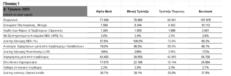 Επί τη ευκαιρία των ανακοινώσεων των αποτελεσμάτων Δ τριμήνου 2025 όλων των συστημικών τραπεζών την προηγούμενη εβδομάδα είναι ενδεχομένως η καλύτερη ευκαιρία να επιχειρήσουμε μια νέα σύγκριση των μεγεθών τους σε σχέση με τις τρέχουσες κεφαλαιοποιήσεις.