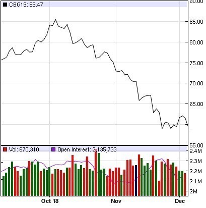 Οι προθέσεις του Σαουδάραβα Υπουργού αποτελούν ένα ακόμη πλήγμα για το εμπόρευμα, το οποίο μετά τα υψηλά του έτους που σημείωσε στις αρχές Οκτωβρίου (86,29$) ξεκίνησε μια αδιάλειπτη ελεύθερη πτώση, χάνοντας το 30% περίπου της αξίας του.