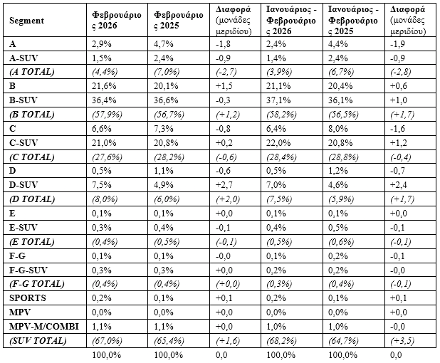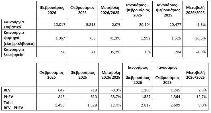 Τον Φεβρουάριο ταξινομήθηκαν 10.017 οχήματα 199 περισσότερα από πέρυσι, το ίδιο διάστημα. Οι πρώτες πληροφορίες από το Μάρτιο δείχνουν ότι ο πόλεμος δεν επηρεάζει ιδιαίτερα την καταναλωτική τάση, αν και συν το χρόνο εφόσον συνεχιστεί θα φανεί πιο έντονα το αποτύπωμά του.