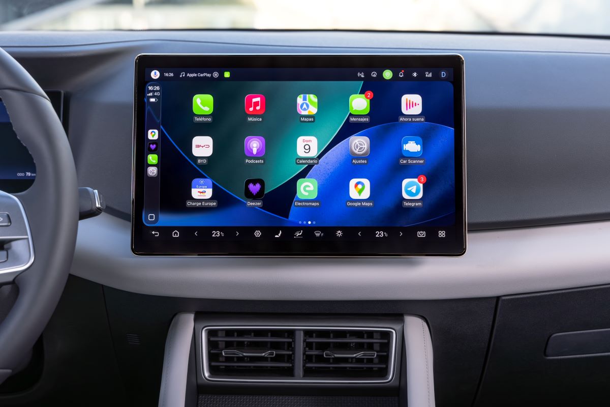 Στο εσωτερικό του ATTO 2 DM-i, η BYD έχει δημιουργήσει έναν θάλαμο επιβατών που συνδυάζει την premium αίσθηση με την κορυφαία ψηφιακή τεχνολογία. Ο οδηγός έχει μπροστά του έναν ψηφιακό πίνακα οργάνων 8,8 ιντσών, ενώ η κεντρική κονσόλα φιλοξενεί μια εντυπωσιακή οθόνη αφής 12,8 ιντσών για το σύστημα infotainment, το οποίο ενσωματώνει λογισμικό Google built-in και πλοήγηση μέσω Google Maps. Το σύστημα πολυμέσων υποστηρίζεται από έναν εξελιγμένο φωνητικό βοηθό με τεχνολογία Generative AI, ο οποίος ενεργοποιείται με την εντολή «Hi BYD» και επιτρέπει μια φυσική και άμεση αλληλεπίδραση με τις λειτουργίες του οχήματος. Η πρακτικότητα ενισχύεται από το επίπεδο δάπεδο που προσφέρει αυξημένη άνεση στους πίσω επιβάτες, καθώς και από τον χώρο αποσκευών που ξεκινά από τα 425lt και μπορεί να φτάσει έως τα 1.335 lt με την αναδίπλωση των καθισμάτων.