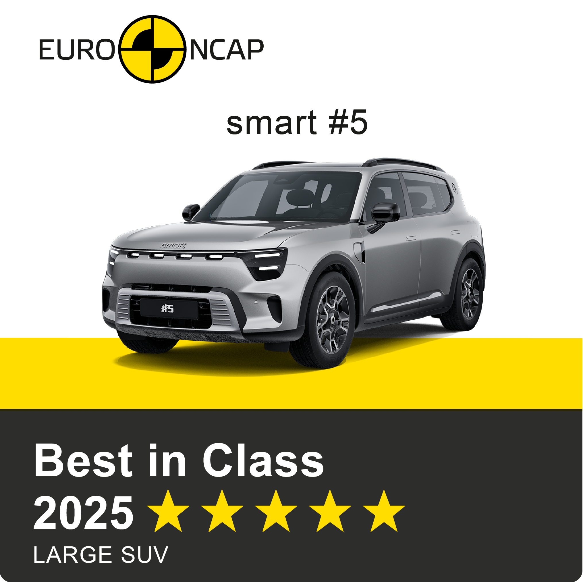 Η έκπληξη της χρονιάς έρχεται από τη smart. Το νέο, επιβλητικό smart #5 απέσπασε τον τίτλο του καλύτερου μεγάλου SUV. Με ισορροπημένες επιδόσεις σε όλους τους τομείς και κορυφαία βαθμολογία 92% στα συστήματα υποβοήθησης, το smart #5 δείχνει ότι η μάρκα έχει μεταμορφωθεί σε έναν υπολογίσιμο παίκτη στην κατηγορία των οικογενειακών οχημάτων μεγάλων διαστάσεων.