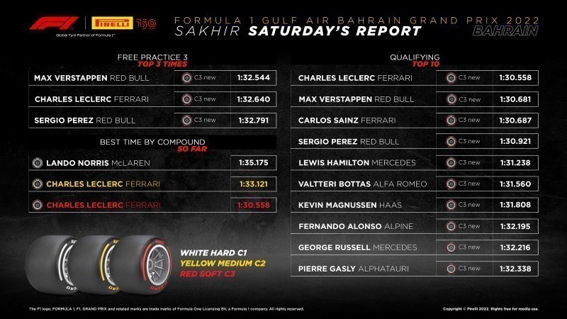 Η πρώτη δεξιά στροφή προσφέρεται για δράμα και οι Φερστάπεν – Λεκλέρκ δεν έχουν καλή χημεία μεταξύ τους. Το παρελθόν τους είναι βαρύ όπως και η ατμόσφαιρα ανάμεσά τους. Βέβαια οι Ferrari εκκινούν από το καθαρό κομμάτι της πίστας και με την άμμο της ερήμου αυτό μπορεί να αποδειχτεί πολύ σημαντικό. Καθοριστικό ρόλο στον αγώνα θα παίξει η θερμική καταπόνηση των ελαστικών, ειδικά καθώς προβλέπεται σήμερα η θερμοκρασία να είναι πάνω από τους 30 βαθμούς Κελσίου στο οδόστρωμα. Στις δοκιμές χτες ήταν 24 βαθμοί Κελσίου. Θυμίζουμε ότι ο αγώνας εκκινεί σούρουπο και η θερμοκρασία οδοστρώματος/αέρα πέφτει κατά τη διάρκειά του.