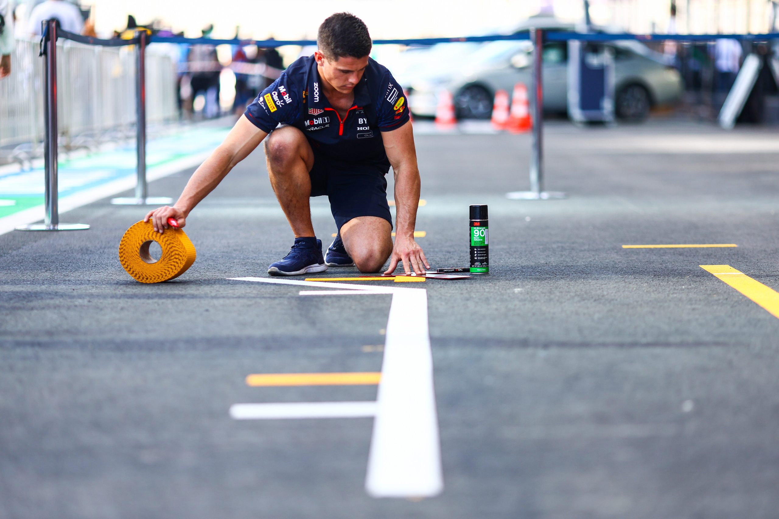 Δεν αρκεί όμως αυτό, πρέπει τόσο οι μηχανικοί να σταθούν στο σωστό σημείο όσο και ο οδηγός να σταματήσει ακριβώς εκεί που τον περιμένουν. Για να γίνει αυτό, την Πέμπτη ένας μηχανικός κάνει μια οριοθέτηση στο pit lane. Αφού μετρήσει προσεκτικά, βάζει τα σημάδια, που θα σταθεί ο κάθε μηχανικός που θα τοποθετήσει την κάθε ρόδα του μονοθεσίου ο οδηγός.