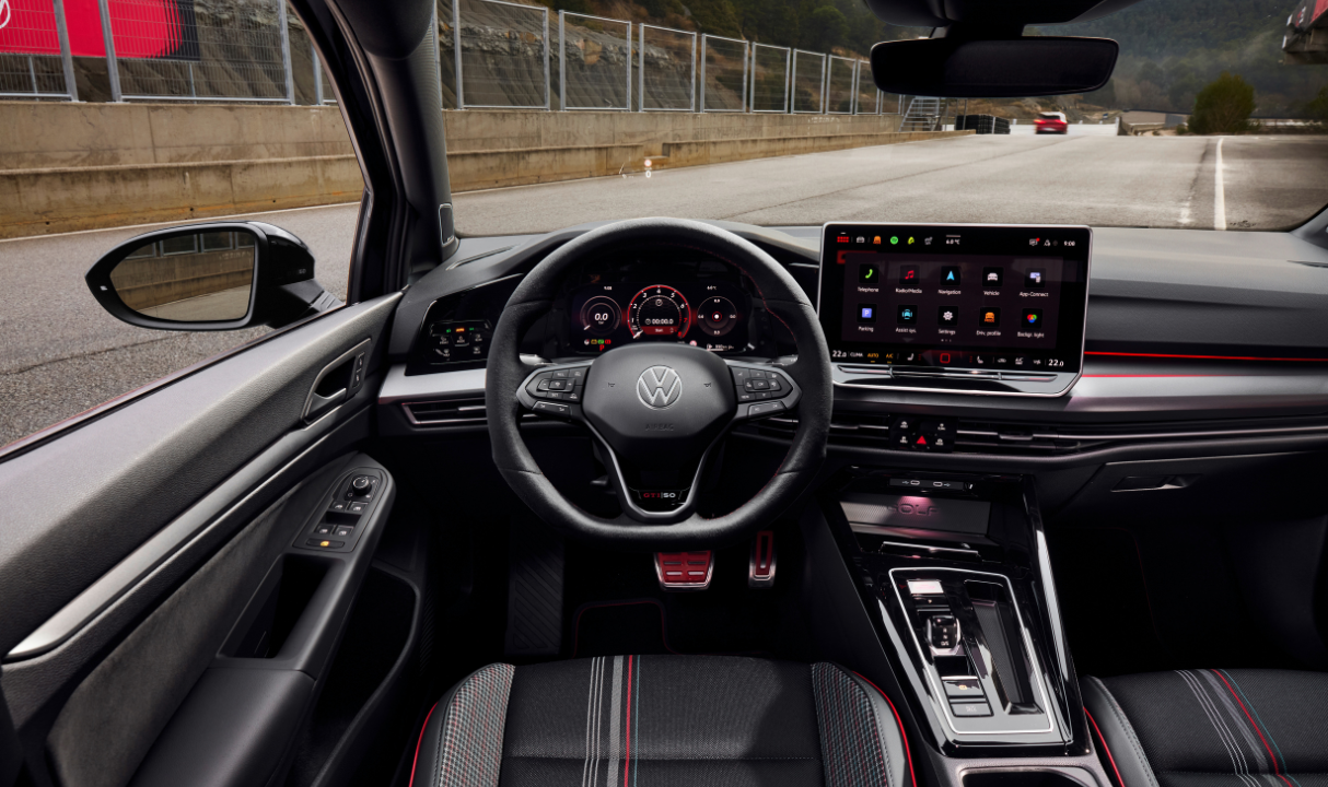Το εσωτερικό του Edition 50 αποτελεί έναν συνδυασμό παράδοσης και σύγχρονης πολυτέλειας, με τον νέο σχεδιασμό επενδύσεων Clark GTI 50 να κλέβει την παράσταση. Το κλασικό καρό μοτίβο έχει επανασχεδιαστεί με μεγαλύτερα σχέδια και μια νέα πράσινη λωρίδα που αντιστοιχεί στο αποκλειστικό εξωτερικό χρώμα Dark Moss Green metallic. Τα σπορ καθίσματα διαθέτουν φινίρισμα σε γκρι ArtVelours Eco με κόκκινες ραφές, ενώ οι ζώνες ασφαλείας είναι εντελώς κόκκινες, προσφέροντας μια έντονη χρωματική αντίθεση στην καμπίνα. Το πολυλειτουργικό δερμάτινο τιμόνι φέρει το σήμα GTI 50, ενώ για πρώτη φορά τα καλύμματα των πεντάλ είναι κατασκευασμένα από κόκκινο καουτσούκ, ενισχύοντας τη σπορ αίσθηση.