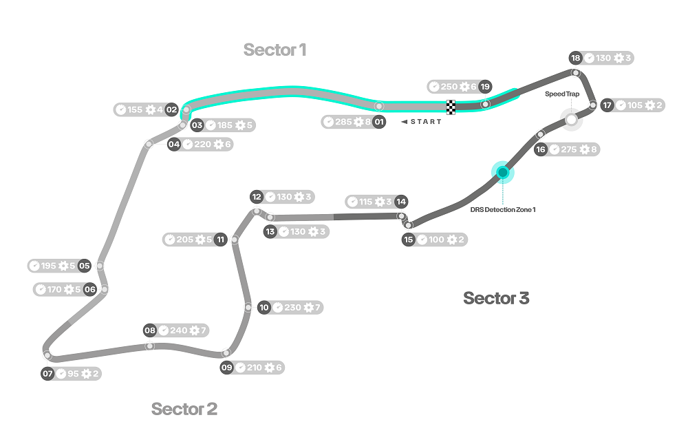 Με 19 στροφές (10 αριστερές και 9 δεξιές) και μια σημαντική υψομετρική διαφορά 30 μέτρων από το ψηλότερο προς το χαμηλότερο σημείο, η πίστα είναι αρκετά στενή και υπάρχει μόνο μία ζώνη DRS, καθιστώντας τις προσπεράσεις πολύ δύσκολες. Επομένως, οι κατατακτήριες δοκιμές παίζουν σημαντικό ρόλο στον καθορισμό της έκβασης του αγώνα. Ποτέ δεν έχει κερδίσει οδηγός που εκκινούσε κάτω από την 5η θέση. Σε 19 από τις 30 περιπτώσεις, ο οδηγός που τερμάτισε πρώτος είχε εκκινήσει από την πρώτη σειρά.