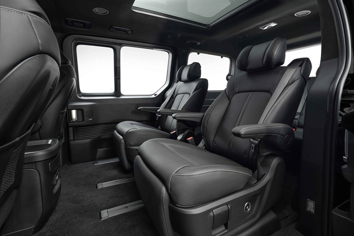 Κεντρικό στοιχείο αποτελεί η μοναδική αρχιτεκτονική χωροταξίας της Hyundai, που προσφέρει μια ευρύχωρη καμπίνα με έντονη αίσθηση ανοιχτού χώρου και ελευθερία κίνησης. Το επίπεδο πάτωμα, οι μεγάλες εσωτερικές διαστάσεις και η ευφυής διάταξη των καθισμάτων δημιουργούν μια lounge ατμόσφαιρα, όπου οι επιβάτες μπορούν να χαλαρώσουν και να μετακινηθούν άνετα. Το εσωτερικό έχει σχεδιαστεί έτσι ώστε να προσαρμόζεται ομαλά σε διαφορετικές ανάγκες, από την καθημερινή μετακίνηση και τα οικογενειακά ταξίδια έως την επαγγελματική μεταφορά επιβατών και τις δραστηριότητες αναψυχής.